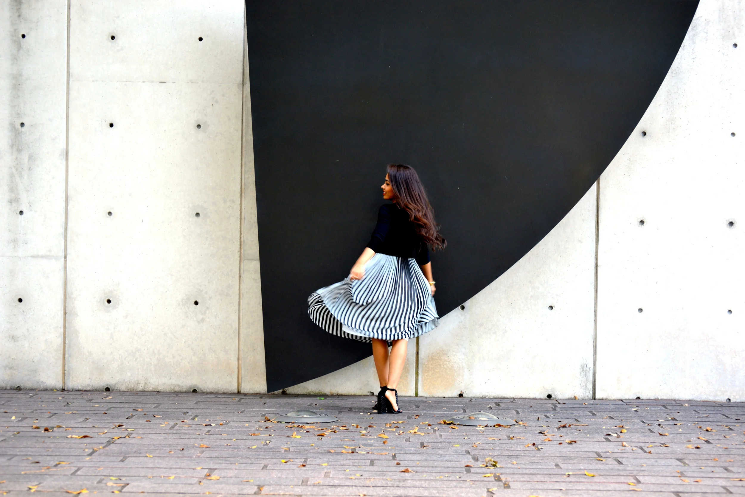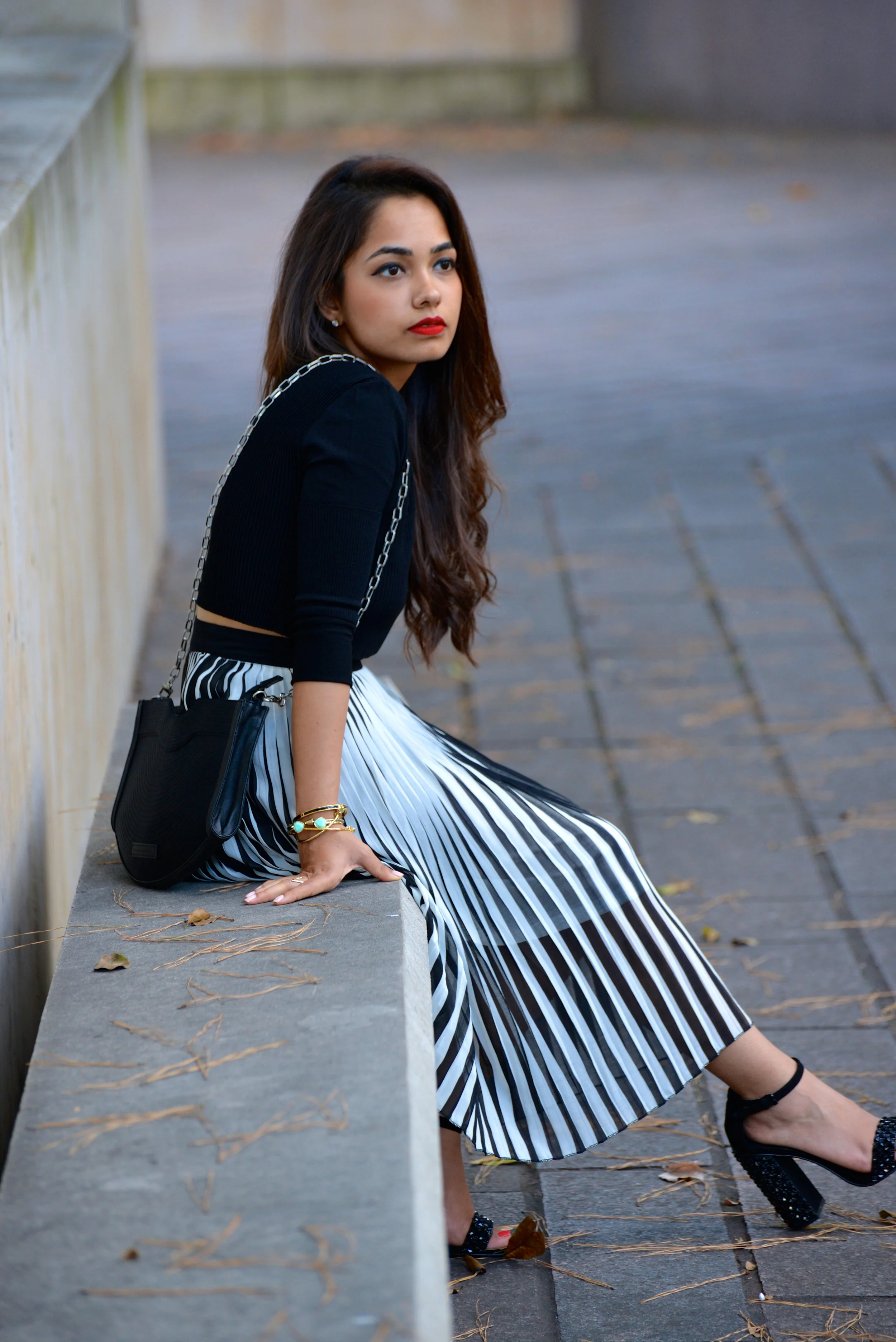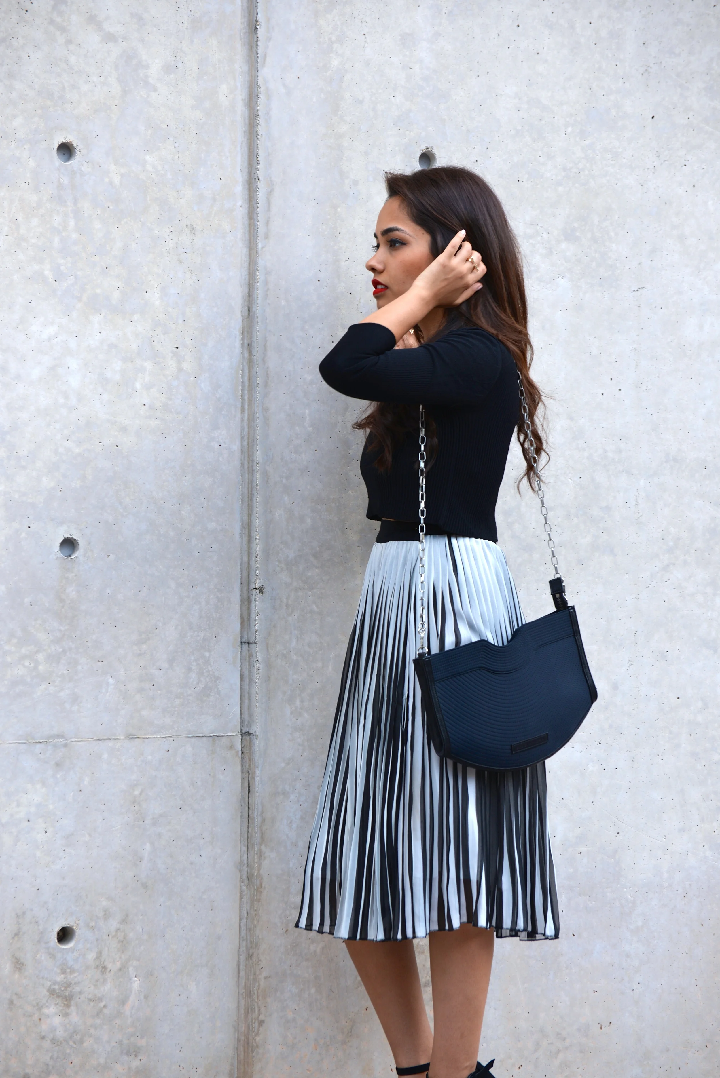 Black and White is one of my favorite go-to color combinations as you can pretty much wear this combo all year around and alter it to fit a day or a night look. One of the main reasons I chose this accordion pleated skirt was because of the black and white vertical stripes, which will make you look taller and slimmer.